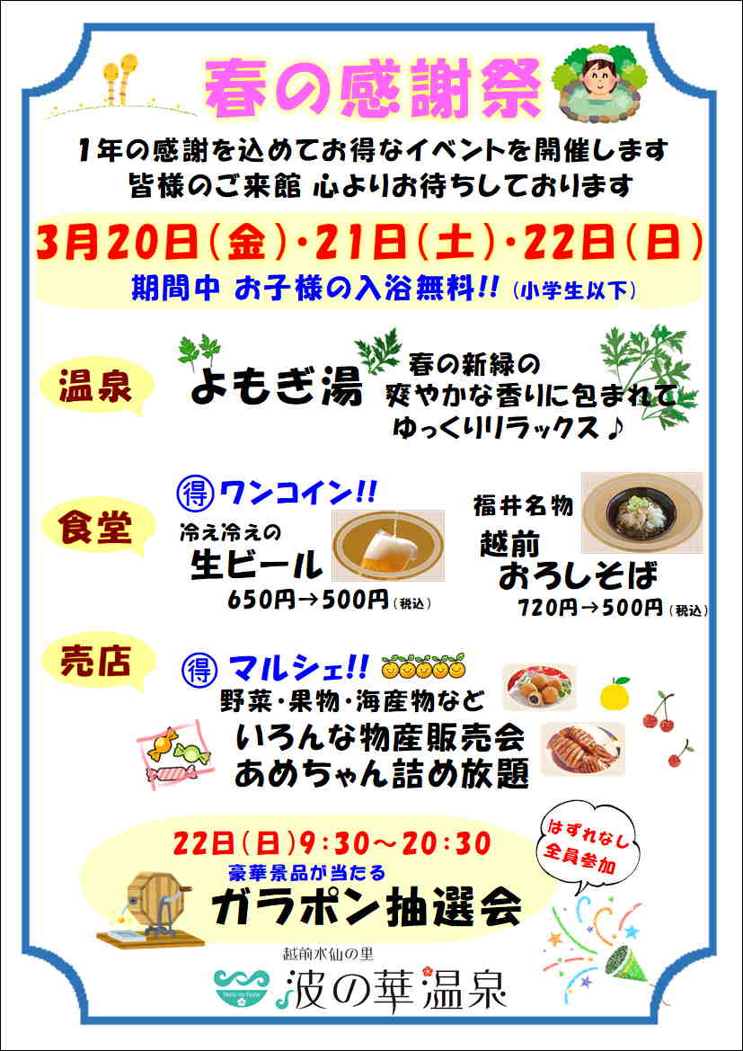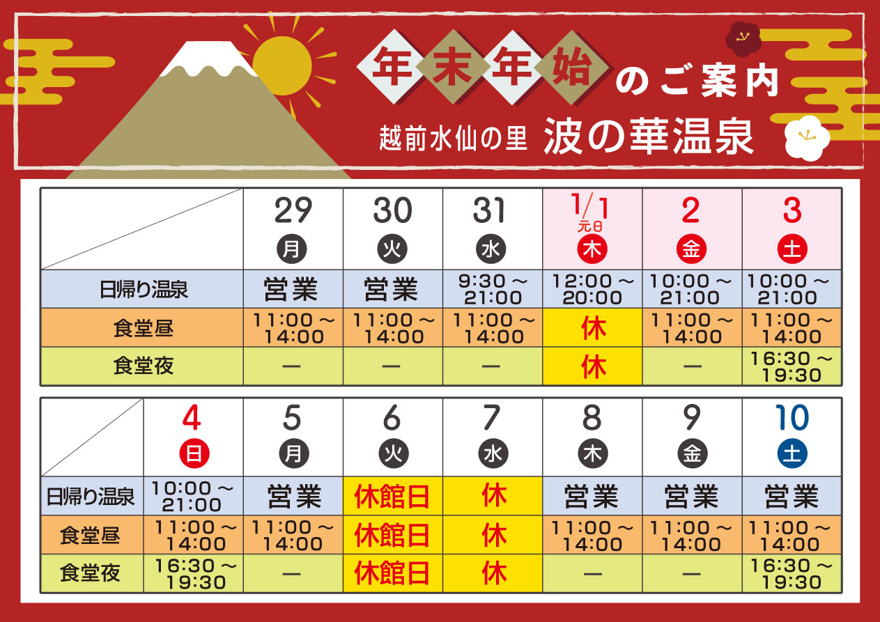 ※福井市規定の入湯税が含まれています。(入湯税は2021年4月現在の入湯税が含まれています)